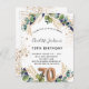 Postal De Invitación 70.º cumpleaños eucalipto verde purpurina elegante
