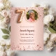 Una moderna y elegante invitación fotográfica para una fiesta de cumpleaños número 70. Fondo de degradado de oro subió, decorado con estrellas. Personalice y agregue los detalles de su fiesta.