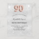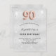 Una invitación moderna, elegante y glamurosa para una fiesta de cumpleaños número 90. Un fondo falso plateado, decorado con polvo purpurina. Personalice y agregue su nombre y detalles del fiesta. El número 90 está escrito con un tipo de letra, guión, estilo de globo de oro subió. Sugerencia: Si no desea que se vea como una postal, haga clic en personalizar, vaya a la parte posterior y quite el separador y el sello postal.