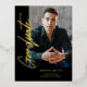 Celebra tu Graduado con esta tarjeta postal de invitación a Relieve metalizado dorado de escritura moderna de color Oro Negro, diseñada en negro, con una foto central, nombre de graduado y graduado, clase y escuela en Relieve metalizado dorado. Añadir los detalles de la fiesta de graduación en la parte posterior de la postal. Esta invitación es perfecta para un graduado masculino como su hijo que se está graduando de la universidad o de la secundaria. Elija entre impresiones y/o una descarga digital instantánea. Diseño original de Ana Garza/Kardz Studio Designs. Siéntase libre de contactarme a través del Chat Zazzle si tiene alguna pregunta.