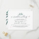 ¡Cuidado! Circunstancias imprevistas suceden, y cuando lo hacen, puedes informar fácilmente a tus invitados sobre tus nuevos detalles de una manera divertida y sencilla con esta tarjeta de actualización de boda. Cuenta con una hermosa rama de acuarela verde en la parte superior con "boda más pequeña" en una fuente de letra cursiva chic junto con una tipografía sans-serif elegante. Simplemente haz clic en "Personaliza esta plantilla" y agrega tus propios detalles. Si necesitas ayuda con el diseño, presiona el botón "Mensaje" y uno de nuestros diseñadores principales te ayudará.