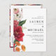 Postal De Invitación Amarilis roja acuarela y Boda floral otoño