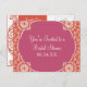 Una carta luminosa y colorida del Bridal Shower Invitation Post para la novia que se inclina hacia el contemporáneo con un pequeño toque de tradición. El blanco de las damasquinadas tiene un aire de encaje moderno y el diseño del centro de quatrefoil no es nada del otro mundo. La mandarina, el blanco y la sandía son una combinación de colores muy animada. Esta invitación se puede crear en cualquier combinación de colores que desee. Todo lo que necesitamos es una muestra o muestras de color y estamos encantados de configurarlo para usted, sólo envíenos un correo electrónico.