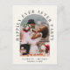 Tarjeta postal de anuncio de boda íntima o elopement con crema ligera moderna o invitación a recepción de boda para informar a familiares y amigos que se casaron en una pequeña ceremonia de boda, y para invitarlos ahora a una recepción de boda. La parte delantera presenta su foto en un marco arqueado y "Fiesta de Siempre Felices" en tipografía elegante. Debajo de su foto, agregue sus nombres y fecha de boda. En el reverso, personalice su mensaje con más detalle y agregue los detalles de la fiesta o recepción y sus nombres en una escritura similar a una firma.