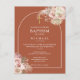 Elegantes acuarelas de hierba de pampas floral y marco de arco elegante enmarca los detalles de su bautizo o bautismo en tipografía moderna y elegante sobre un fondo de terracota boho. Diseñado por Thisisnotme©