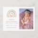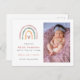 Un moderno y sencillo anuncio de nacimiento con un arcoiris de color pastel y un corazón en el centro. Personalízalo con el nombre del recién nacido, los vitales y los detalles del evento.