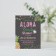Flor y piñas tropicales rosadas y verdes Aloha Baby con texto Personalizado personalizado. Con Floral de Hibiscus, letra de guión de brocha verde de la selva ferina y letras rosas malvas de diseño moderno! Tema de Baby Shower - ¡tarjetas postales de invitación! ~ Revisa mi tienda para ver toda la suite para este diseño!