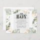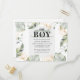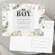 Postal de Invitación de Baby Shower de Jungle Safari Boy Giraffe. Wild, calmada y elegante boy safari animal invitación a la ducha de bebé con una jirafa, efecto oro y hojas verdes. Perfecto para las invitaciones a la ducha de bebé.