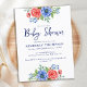 Postal De Invitación Baby Shower Patriótico Floral Rojo Azul Blanco