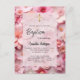 Postal De Invitación Baptismo flores rosadas negras bebé