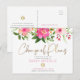 Postal De Invitación Bat Mitzvah Floral Rosa Acuarela Letra Dorada