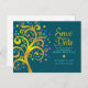 Postal De Invitación Bat Mitzvah salva el árbol de oro Verde azulado de