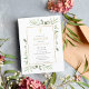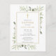 Con delicadas hojas de vegetación en acuarela y un elegante crucifijo dorado, esta elegante invitación de bautizo o bautismo neutral en cuanto al género puede ser personalizada con su información especial, con un fondo de salvia plateada en el reverso. Diseñado por Thisisnotme©