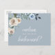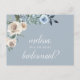 La elegante tarjeta postal de la dama de honor presenta una coloración acuática floral de flores azules y neutras y una delicada caligrafía. Tarjetas de vuelta con mensaje para su dama de honor y dirección de retorno. Invitación perfecta para bodas de invierno y otoño.