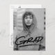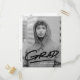 Postales de invitación a la fiesta de graduación moderna con la foto vertical senior del graduado con "Grad" en letras escritas a mano en negro con un guión bajo. Personalice la parte delantera de la tarjeta postal de la fiesta de graduación con la adición del nombre del graduado, el nombre de la escuela y el año de graduación. La postal se revierte para mostrar la dirección de retorno y los detalles de la fiesta de graduación.