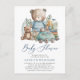 Juguetes De Animales De Woodland Azules Cute Script Boy Invitación Postcard. Celebra la próxima llegada de tu precioso bebé con esta hermosa postal de Invitación. Todos los textos están predispuestos para que puedas personalizarlos fácil y rápidamente con los detalles de tu ducha de bebé.