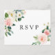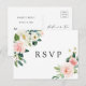 Tarjeta postal de RSVP de boda elegante con flores de acuarela pintadas en rosa blush, blanco y follaje verde. Para una personalización más avanzada de este diseño, por favor haga clic en el botón "Personalizar". También están disponibles artículos que coinciden.