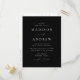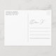 Postal minimalista y moderna de invitación a la boda con los detalles de su boda en letras blancas con acentos caligráficos en blanco y negro. Personalice la parte posterior de la tarjeta postal de invitación a la boda de la moda con su dirección de retorno, sitio web del boda, imágenes, etc. Diseñado para coordinar con nuestra colección de bodas Modern Elegance.