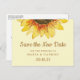 Boda de campo. Guarda la nueva fecha. Girasol rústico en acuarela amarilla. Haz que familiares y amigos se enteren de que tuviste que posponer tu boda con esta elegante tarjeta de anuncio de aplazamiento.