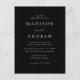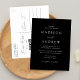 Postal minimalista y moderna de invitación a la boda con los detalles de su boda en letras blancas con acentos caligráficos en un fondo blanco y negro. Personalice la parte posterior de la tarjeta postal de invitación a la boda de la moda con su dirección de retorno, la fecha de respuesta deseada, el sitio web del boda y las instrucciones para los invitados que utilicen las plantillas de texto proporcionadas. Diseñado para coordinar con nuestra colección de bodas Modern Elegance.