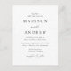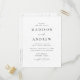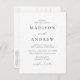 Postal minimalista y moderna de invitación a la boda con los detalles de su boda en letras blancas con acentos caligráficos en un fondo blanco y negro. Personalice la parte posterior de la tarjeta postal de invitación a la boda de la moda con su dirección de retorno, la fecha de respuesta deseada, el sitio web del boda y las instrucciones para los invitados que utilicen las plantillas de texto proporcionadas. Diseñado para coordinar con nuestra colección de bodas Modern Elegance.