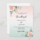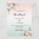 Rosa de moda dorado y fondo degradado verde. Decoradas con flores de oro rosa y rosa rubor, flores de rosa y hojas de eucalipto de color verde acuático, brotes, vegetación y brotes de oro falsos. Personalice y agregue sus nombres y detalles.