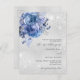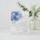 Fondo de color plateado falso decorado con flores azules y chispas purpurinas falsas. Personalice y agregue sus nombres y detalles del boda. Letras de color negro.