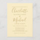 Con nombres de estilo característico, esta elegante postal de invitación a la boda amarilla puede ser personalizada con su información en letras de oro de moda. Diseñado por Thisisnotme©