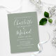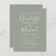 Con nombres de estilo de firma, esta elegante postal de invitación a la boda verde sabio puede ser personalizada con su información en letras de moda. Diseñado por Thisisnotme©