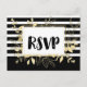 Postal De Invitación Boda Glamurosa Botánica de Oro Negro Moderno RSVP