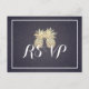 Postal De Invitación Boda RSVP Responder Dorado Pineapple Pareja Marina
