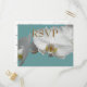 Románticas tarjetas RSVP invitan a la boda para acompañar invitaciones coordinadas, diseñadas con orquídeas blancas bonito contra un tono joya de azul turquesa. Estas tarjetas de respuesta de personalizado incluyen un área personalizada para la opción de entrada y un área de devolución predirigida. Se pueden personalizar todas las áreas de plantilla. No dudes en contactarme si necesitas ayuda para personalizar tu diseño.