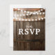 Rústica cuerda de luces Boda RSVP postal | Fondo de barril de roble de grano, luces de cuerdas de centelleo y redacción boda moderna. Encontrar otras tarjetas rsvp de boda barnyard en http://www.zazzle.com/special_stationery Haga clic en el botón "Personalizar it" para una mayor personalización de esta plantilla. Podrá modificar todo el texto, incluidos el estilo, los colores y los tamaños. Encontrarás elementos coincidentes más abajo de la página, sin embargo, si no puedes encontrar lo que buscas, por favor contáctame.