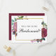 Postal De Invitación Borgoña ¿Serás mi dama de honor. Flores granate