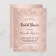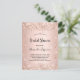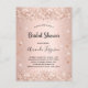 Para una elegante ducha de novia. Un fondo de color oro rosa. Decorada con oro rosa y chispas de imitación rosada. Personalice y agregue el nombre de la novia y los detalles del fiesta. El nombre y el texto: Bridal Shower están escritas con un guión de estilo con letras a mano. Parte posterior: fondo dorado rosa, diseño postal. Sugerencia: Si no desea que se vea como una postal, haga clic en personalizar, vaya a la parte posterior y quite el separador y el sello postal.