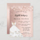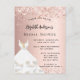 Postal De Invitación Bridal Shower rosa vestido blanco dorado elegante
