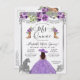 Floral Morado Pastel Violeta Princesa Vestido Guisante Purpurina Gris Plata Sparkle Charra Princesa Cowboy Boots Caballo Invitación Quinceanera 15 cumpleaños