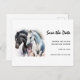 Guarda la postal de fecha con un par de caballos blancos y negros que cuelgan juntos. Ilustrado con acuarelas.