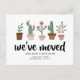 Una moda y una nueva y moderna invitación de mudanzas con cactus y plantas para los amantes de las plantas. Personalízalo con tu nombre y nueva dirección.