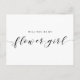 Invita a tus mejores amigas a estar a tu lado con esta Tarjeta Postal de Propuesta de Caligrafía Moderna ¿Quieres Ser Mi Dama De Flores? Este diseño se centra en una tipografía elegante de estilo letra a mano y una presentación limpia y minimalista que emana sofisticación.