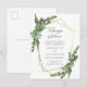 ¡Caramba! Las circunstancias imprevistas son difíciles de planificar, pero con estas tarjetas postales de anuncio de boda de "Cambio de planes" puedes informar a tus queridos familiares y amigos. Este diseño presenta un borde geométrico de lámina de oro falso con vegetación botánica de acuarela en las esquinas. Personaliza con tus propios detalles haciendo clic en "Personalizar esta plantilla". Puedes escribir los detalles de tu destinatario en el reverso a mano.
