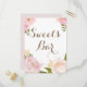 Cartel de bar de dulces caprichoso con hermosas ilustraciones de acuarela de peonías y rosas. Esta es parte de un conjunto de boda. Perfecto para fiestas de primavera y jardín. Artículos coincidentes están disponibles.