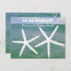 Invitaciones de anuncio de postcard de recepción de post-boda asequibles. Dos estrellas de mar representan a la pareja feliz sobre un fondo de agua del océano, con texto de plantilla blanca para personalizar para su