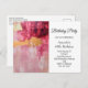 Postal invitada por cumpleaños con pinceladas de pincel artístico dorado y rosa componen este moderno diseño de fondo abstracto.
