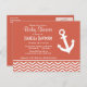 Postal De Invitación Chevron de coral oscuro; ancla
