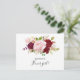 Esta tarjeta postal de invitación de chica de flores tropicales y románticas rojas es perfecta para una ducha de novia simple. El diseño artístico de bordo marsala presenta rosas de acuarela, verde, rosa, borgoña y rubor mezcladas con follaje dispuestas ordenadamente en un ramo de flores radiante y elegante.