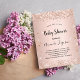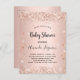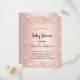 Para una ducha de bebé, para celebrar a una niña. Un rosa de oro falso de aspecto metálico. Decorado con oro rosa, purpurina falso rosa. Personalice y agregue el nombre de la madre y los detalles del fiesta. El nombre y el texto: Baby Shower se escriben con un guión estilo con letras a mano Atrás: fondo oro rosa, diseño de postal. Sugerencia: Si no desea que se vea como una postal, haga clic en personalizar, vaya a la parte posterior y quite el separador y el sello postal.