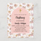 Postal De Invitación Christening pampas flores rosa chica rosa dorado