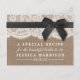 Esta rústica cinta negra con tarjetas de receta de lazo, arpillera y ducha de novia hará el accesorio perfecto para cualquier futura novia. El diseño presenta un bonito fondo rústico con efecto burlap y un romántico efecto de encaje blanco vintage con una impresionante cinta negra con arco. Estas tarjetas de recetas se pueden personalizar para su ocasión especial y harían el accesorio perfecto para cualquier boda rústico, ducha de novia, fiesta de compromiso, fiesta de cumpleaños y mucho, mucho más. *Tenga en cuenta que Zazzle sólo vende tarjetas impresas para que estas tarjetas no tengan ningún material real de malla, encaje, arco o cinta.