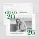 Celebra tu graduación con estilo con estas modernas y audaces postales de invitación a la fiesta de graduación 2025, que presentan un diseño elegante con tu foto horizontal enmarcada con letras en blanco y verde negrita "2025" en las esquinas superior izquierda y inferior derecha. Personaliza el frente con tu nombre y la escuela, mientras que la parte posterior muestra los detalles de tu fiesta de graduación y la dirección de regreso para una invitación pulida y sin complicaciones. Perfecto para graduados de secundaria o universitarios, estas postales de graduación para personalizados le facilitan compartir su día especial con su familia y amigos.